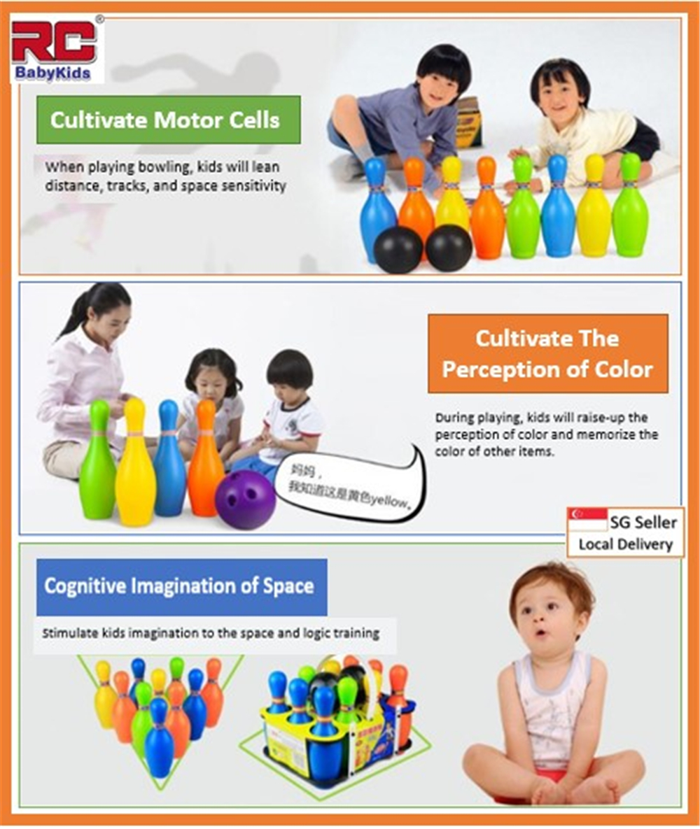 • 10 Bowling Pins + 2 Bowling BallsCute and colorful *,which is attractive to children. *Children will have hours of fun with this set indoors or outdoors. *Babies overall abilities will be improved while having fun. *Taking exercise and doing sports from childhood,build strong body.