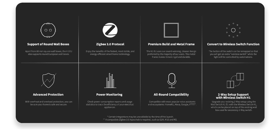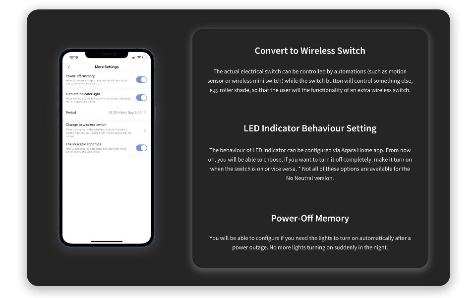 AQARA智能墙壁开关H1(三摇杆/Gang)支持苹果HomeKit、Alexa、谷歌(智能灯开关)