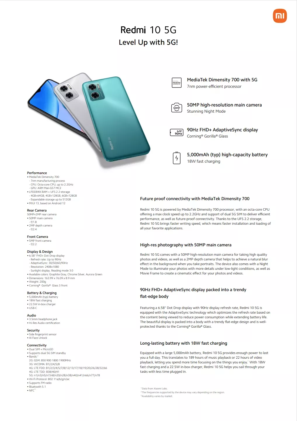 小米红米10 5G 128GB ROM+6GB RAM(全球版)(小米本地保修1年)(免费:钢化玻璃+后盖)